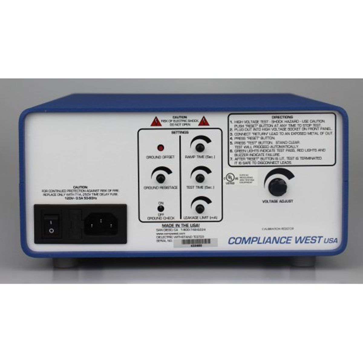 - Allows no load setup of leakage current and test dwell times.